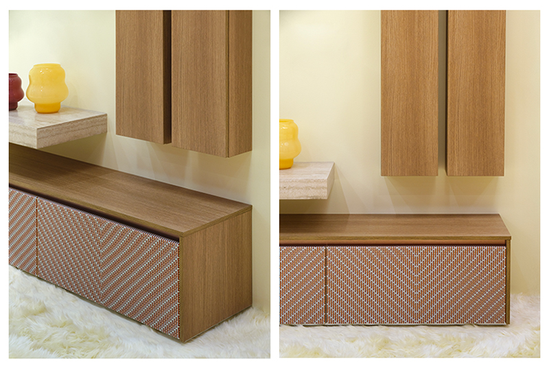 Abbiamo quindi deciso di riportare l’arte dell’intreccio, da sempre simbolo di raffinatezza, reinterpretandola in chiave moderna. Così è nata l’idea di un frontale decorato, colorato, coerente con i nostri principi di design e capace di trasformare il mobile bagno in un oggetto di stile, contemporaneo e senza tempo.